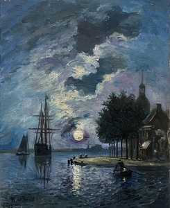 2021Zicht op Overschie bij maanlicht naar J.B. Jongkind.