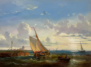 2023Zeezicht olieverf op paneel naar Abraham Hulk, formaat 30x40 cm